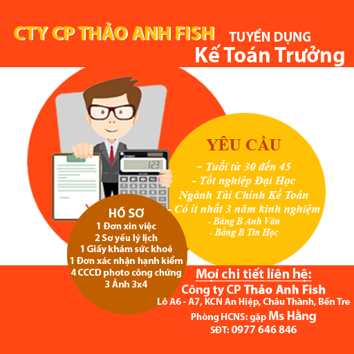 Hiện tại, công ty cổ phần Thảo Anh Fish đang tuyển dụng: